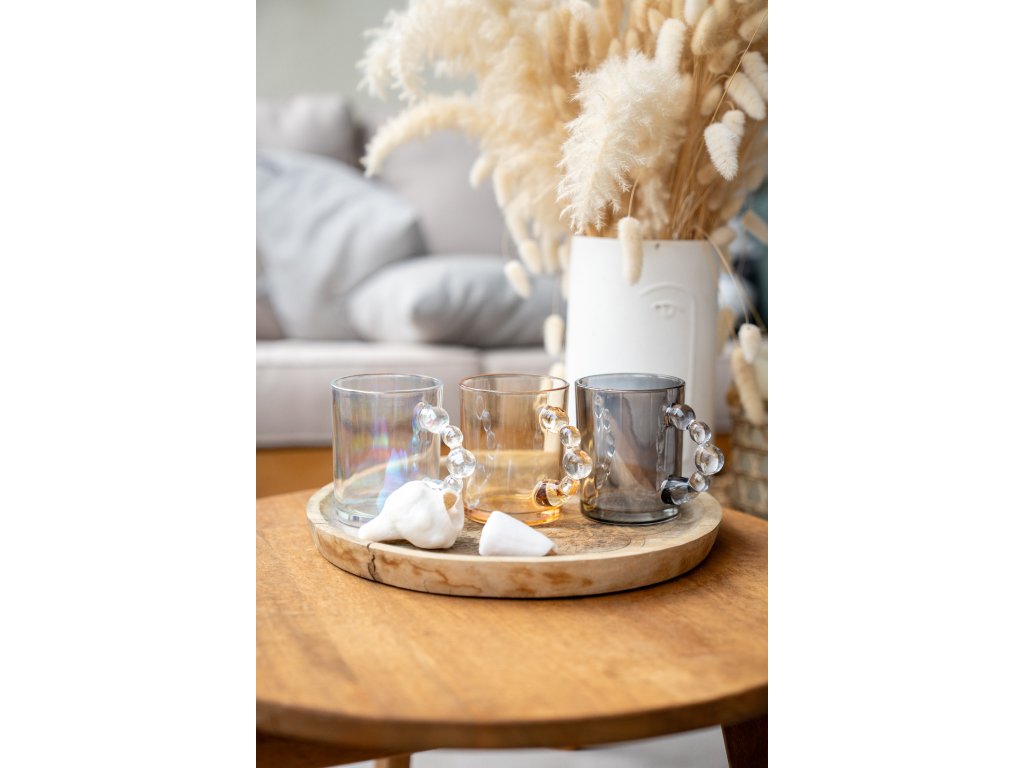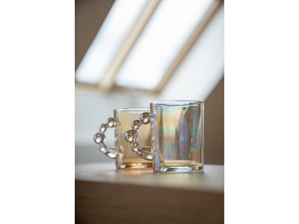 Skleneny hrnek s bublinkovym uchem číry