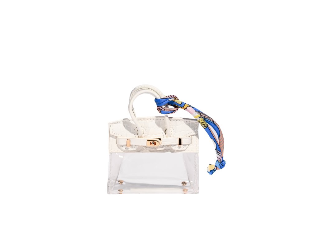Stylová mini kabelka – bílá (8 × 7 cm) je drobný přívěsek, který projasní každý outfit. Funguje jako micro bag charm – připnete ji ke klíčům, na ucho kabelky nebo k zipu batohu a máte drobnosti pěkně pohromadě.