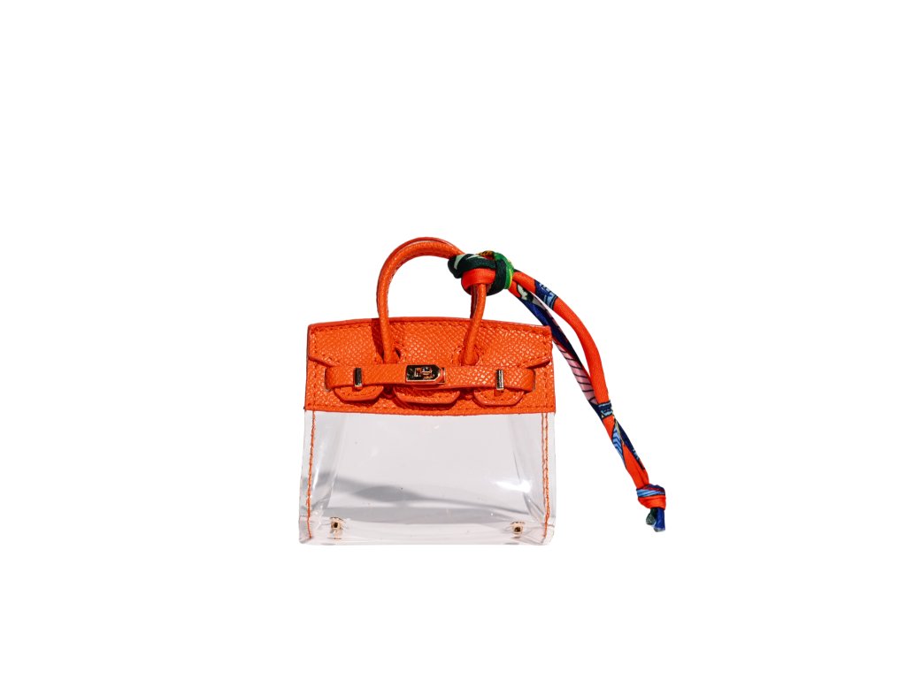 Stylová mini kabelka – oranžová (cca 8 × 7 cm) je energický detail, který ozvláštní klíče, kabelku i batoh. Jako micro bag charm dodá outfitu šmrnc a pomůže udržet drobnosti pohromadě.