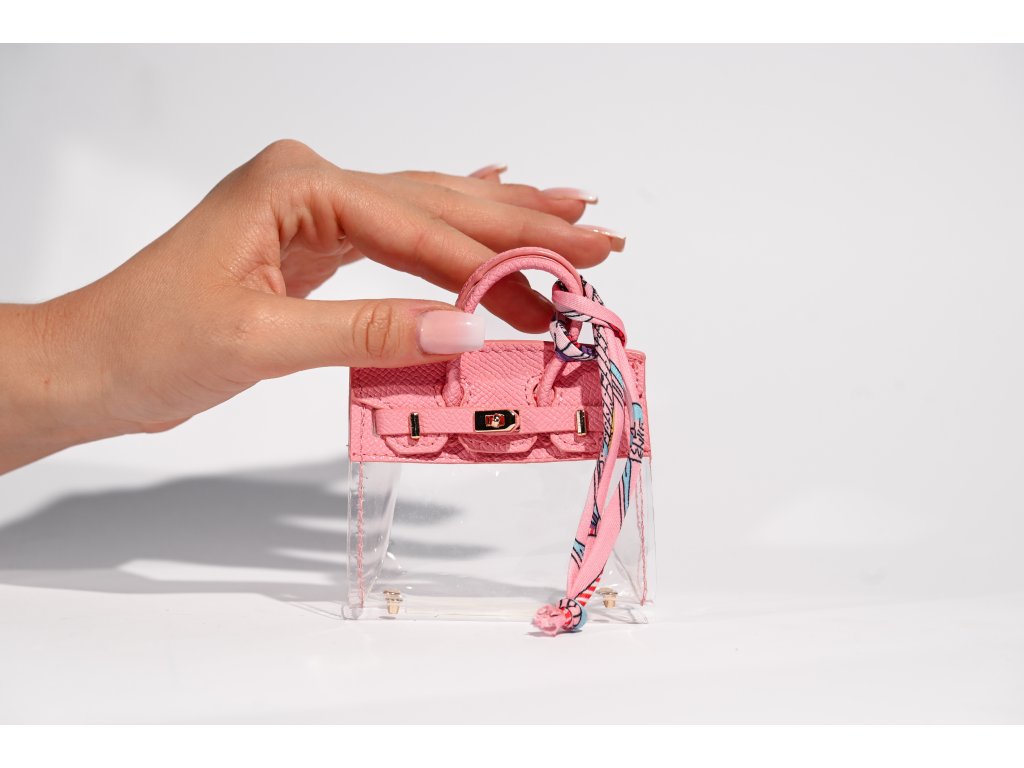 Stylová mini kabelka – růžová (varianta 2, cca 8 × 7 cm) je miniaturní bag charm / micro etui, které dodá klíčům, kabelce i batohu jemný, ženský akcent. Slouží jako chytré pouzdro na drobnosti, abyste měli to nejdůležitější vždy po ruce.