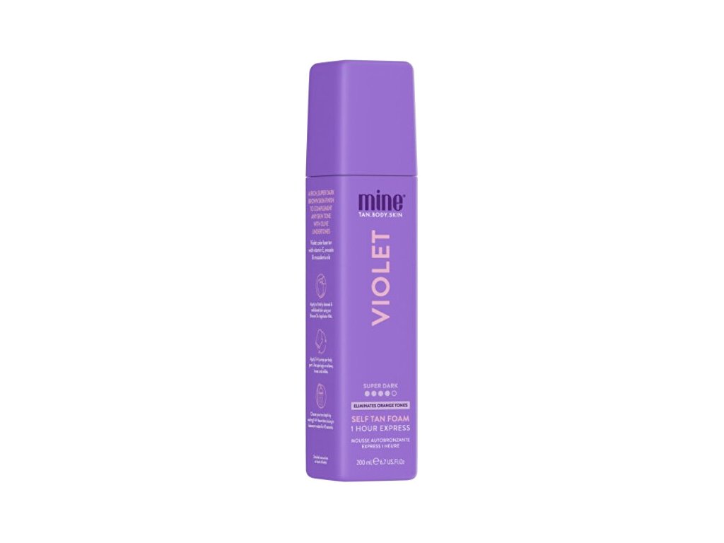 Samoopalovací pěna Violet s fialovým (violet) základem a čtyřnásobnými bronzery vytváří bohatý, super tmavě hnědý odstín inspirovaný Středomořím. Skvěle komplementuje olivové tóny pleti, je vhodná na tělo i obličej, bez oranžových podtónů a bez typického „fake tan“ zápachu.